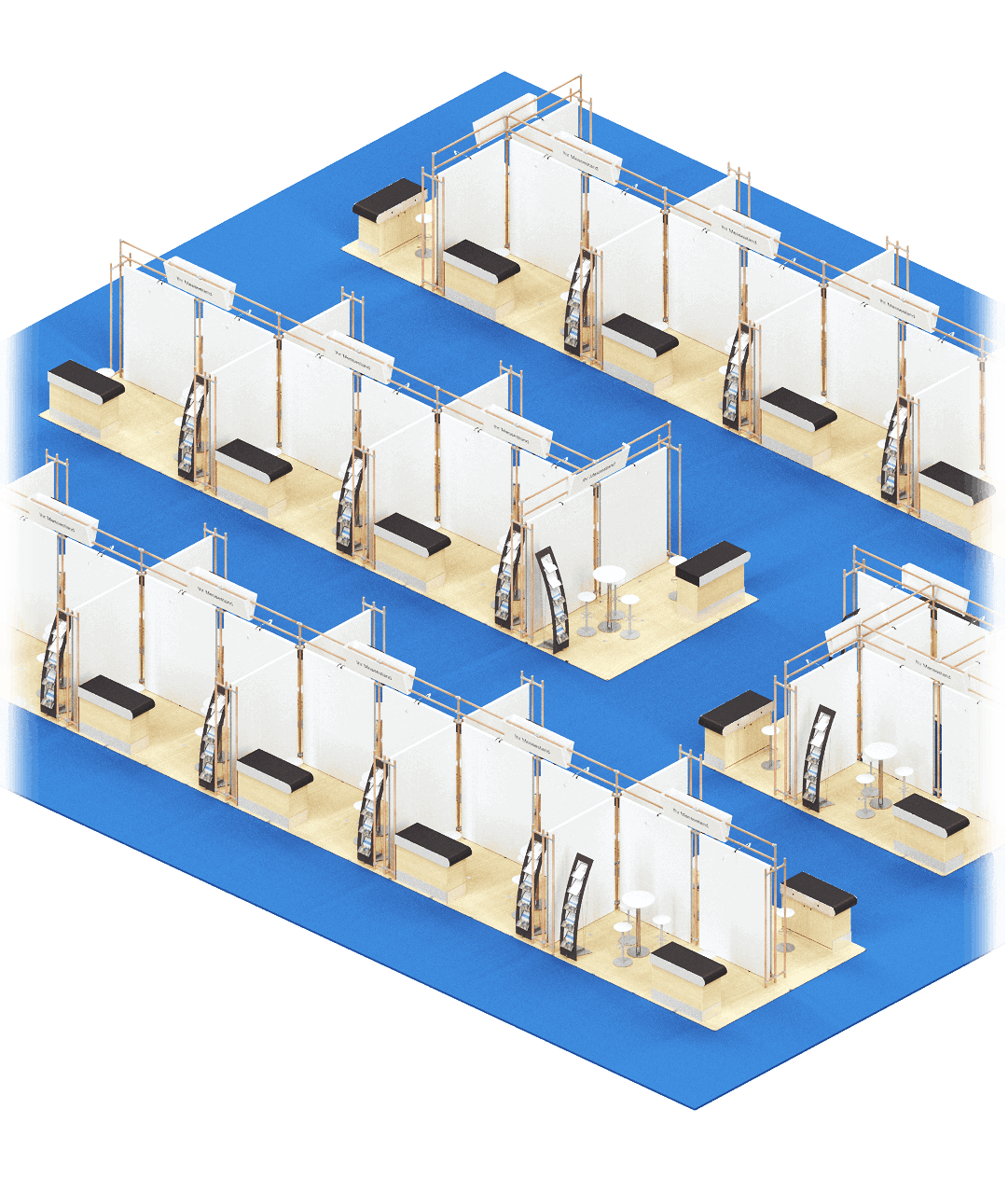 messen & Events Veranstaltungen Das System eignet sich ideal für Job, Kunst- und Buchmessen wie auch anderen Massenveranstaltungen mit hohem Volumen. Natürliche Materialien (Leinen, Holz, Metall) Alternative Bodenfarben Unser Produkt ist die perfekte Lösung für Massenveranstaltungen. Lust auf eine Zusammenarbeit? Rufen Sie uns an.